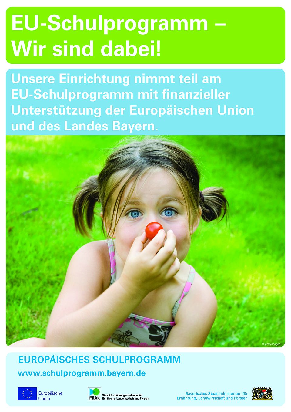 Foto: A. Zelck / DRK e.V.Wir möchten Kinder für Obst, Gemüse, Milch und Milchprodukte begeistern, damit sie ein gesundheitsförderliches Ernährungsverhalten entwickeln. Im EU-Schulprogramm erhalten Kinder von 3 – 10 Jahren in Kindergärten, Häusern für Kinder und Schülerinnen und Schüler der 1.– 4. Klassen in Grund- und Förderschulen kostenlos bevorzugt regionales und saisonales Obst, Gemüse und Milch und Milchprodukte. Das EU-Schulprogramm wird aus Landes- und EU-Mitteln finanziert und ist als Ernährungsbildungsprogramm ein wichtiger Baustein der bayerischen Ernährungsstrategie.